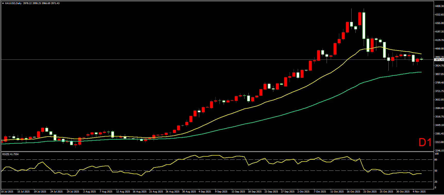 昨日,美国经济数据好于预期,且美国两党有望加速谈判,解决政府停摆问题。受此影响,美股、黄金震荡反弹,黄金日线收下影略长的小阳线。整体走势上看,黄金继续夹在两条均线之间震荡收敛,暂时没有明显方向。市场在等待美国法院对特朗普关税的裁决,以及关键就业数据的发布,预计在数据有重大变化之前,金价继续维持震荡收敛走势。