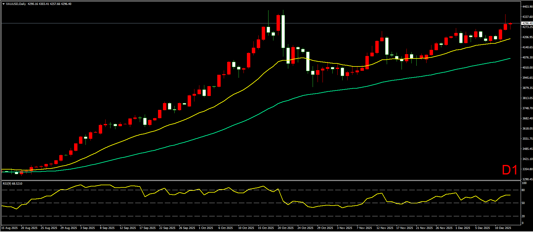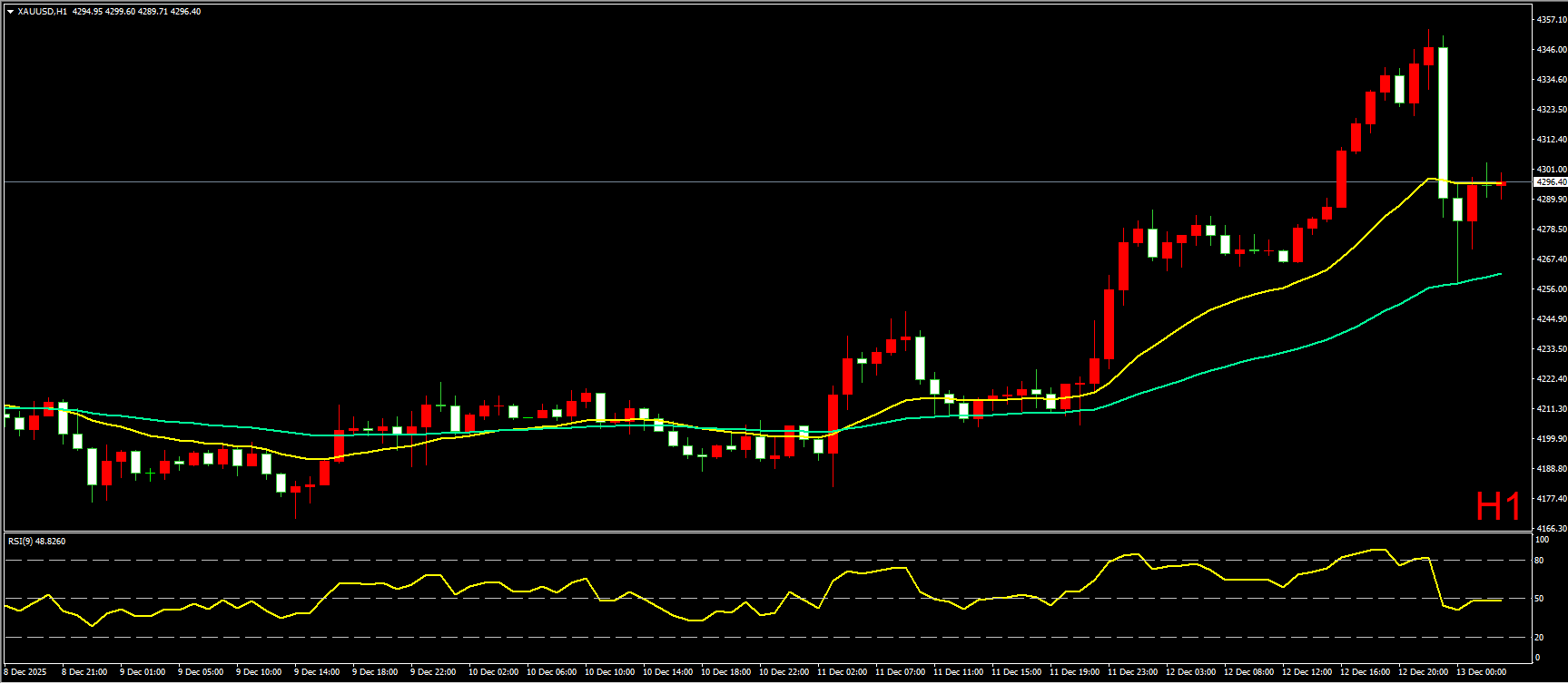 小时图上,昨日黄金在20EMA均线上跟后,如期继续向上走高,最高涨至4353附近。不过,尾盘金价突然跳水,一口气暴跌近95美金,直接跌至60EMA均线附近才逐步企稳反弹,最终收线在20EMA均线位置。短线走势上看,黄金强势上攻形态被尾盘大阴线有所破坏,但多头趋势并未完结,短线预计将围绕20EMA均线震荡整理,待消化大阴线压力后,仍有望继续上探高点。因此在操作上,建议先以高抛低吸震荡操作为主。